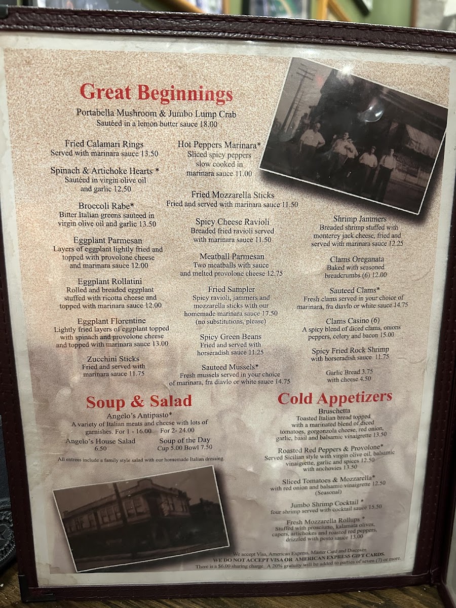 Angelo's captures the essence of a family-run eatery, where every meal is celebrated and every guest feels at home. The decor is filled with nostalgic memorabilia, echoing stories of the many patrons who have walked through its doors over the decades.
