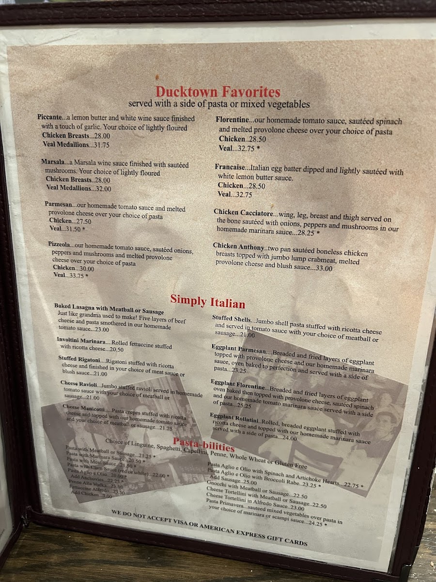 For something truly special, make sure to try the Ducktown Favorites. Dishes like the Piccante, featuring a zesty lemon, butter, and white wine sauce, or the rich Marsala wine sauce with tender mushrooms over your choice of chicken or veal are just the beginning. You cannot go wrong with the famous lobster ravioli, a crowning jewel of their menu that has patrons raving and returning again and again.